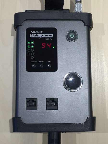 On the controller there’s an on/off button, a dimmer toggle to control the brightness and digital read out showing the output as a percentage. You can change the output of the lamp between 10-100%. When using the dimmer there doesn’t seem to be any colour shift but the light output does flicker as you decrease or increase the intensity of the light. This is no good if you are trying to discreetly adjust the brightness whilst recording. The DMX option on the control unit might be better for this if you’re using a lighting control desk.