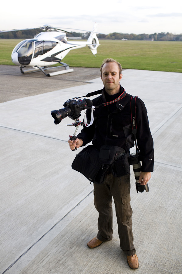 Overnight I was presented with my first opportunity to try the Redrock out when I received a call from the Guardian newspaper and asked to shoot an aerial video the following day of the latest developments at the Olympic site over in east London. On finding out how small the helicopter for the trip sounded, and realising how little equipment I was going to be able to take with me, I realised I’d need to re-think my approach. The door on my side of the helicopter was going to be removed, leaving nothing between me and the great outdoors but a seat belt, to allow me an unobstructed shooting area, so balancing a large-ish rig like the Redrock, changing lenses mid-flight, and everything else that might need juggling with, sounded like a nightmare, if not downright impossible. This proved a good guess as when it came to getting into the chopper and strapping in, the pilot made me go through all of my equipment that was either strapped around me or inside a host of pouches and zip pockets to take only really essential gear. He then wanted a complete demonstration of exactly how I proposed to change lenses, data cards and batteries in mid-air without dropping anything and killing someone 1500 ft or so below us.