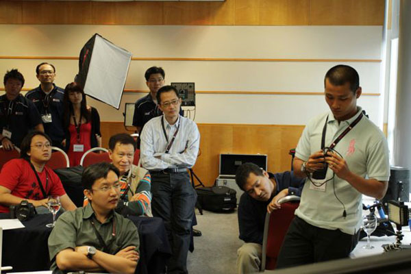 Now I am no veteran videographer, nor do I profess to know everything about the subject, but luckily on hand also were former TV news shooter Steve Rushworth from Genus and Edwin Tan of the Canon Pro video department with some more expert knowledge. They helped me to demonstrate some of the latest products can really help to get a more “35mm” shallow depth of field look from the DSLRs. The Genus Mattebox, Fader ND filter and brand new soon to be launched follow focus were on show along with the Canon 5DmkII and 7D and other accessories from Litepanels, Manfrotto and Steadicam. Surprisingly no-one in the audience had a Fader filter for their DSLR video so I was glad to pass on how I use them to get shallow DOF in broad daylight. I really enjoyed the 2 days and it seemed like the participants did too.