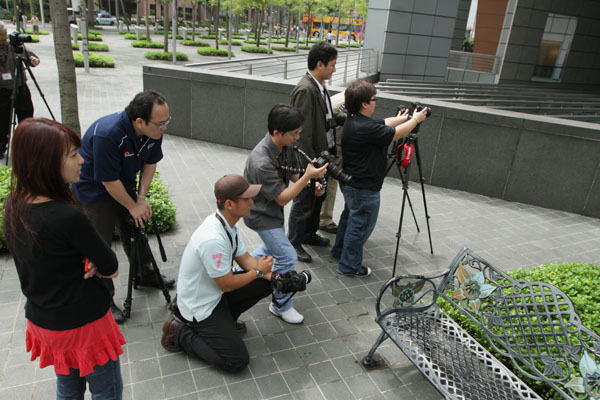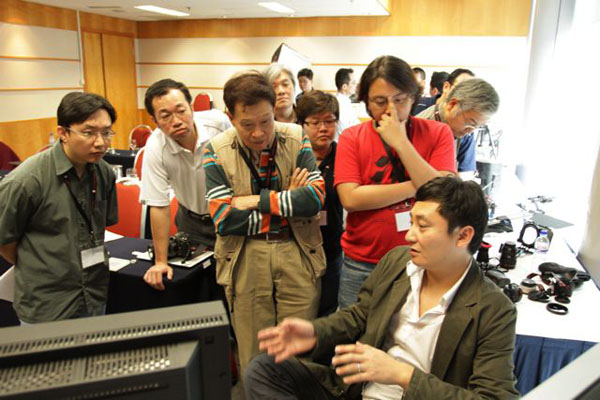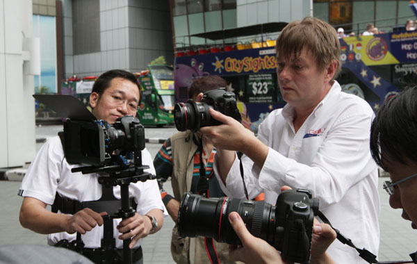 DSLR video is really beginning to take off in Asia, I’ve already run DSLR video workshops at two of China’s largest newspapers. In Singapore there are already ads on the local TV done by DP’s using the 5DmkII and most photographers I talked to saw video as the next big thing. People take photography gear seriously here and as you can see from the photos there was quite an array of kit.