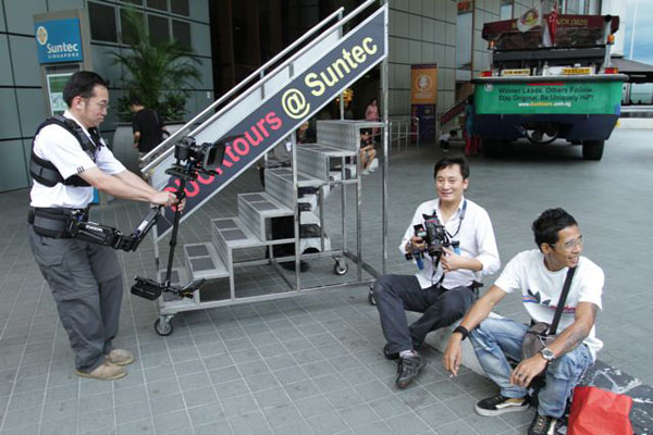 In action at the Cathay Photo workshop, Clarence Lee (L) models the 5DmkII with Steadicam Pilot and Genus Mattebox