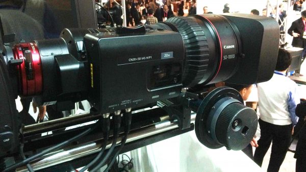 At Inter BEE in Tokyo today Canon were showing there new 50-1000mm cine servo zoom lens that they announced in October. Not only does it feature a highly impressive 20x zoom but it also has a built-in 1.5x range extender taking the maximum focal length up to a whopping 1500mm. If you paired this lens on a Sony F5/55 and engaged the 2x centre crop mode (a HD crop from the centre of the 4K imager) you would be looking at something approaching 4500mm full-frame equivalent!