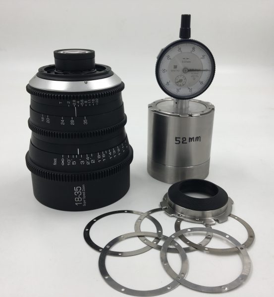 How is he so confident that each lens he converts is parfocal? Each lens made is set up on a projector and collimator to confirm this to his satisfaction. If the lens back focus is off then it is adjusted using shims. This takes time and effort.