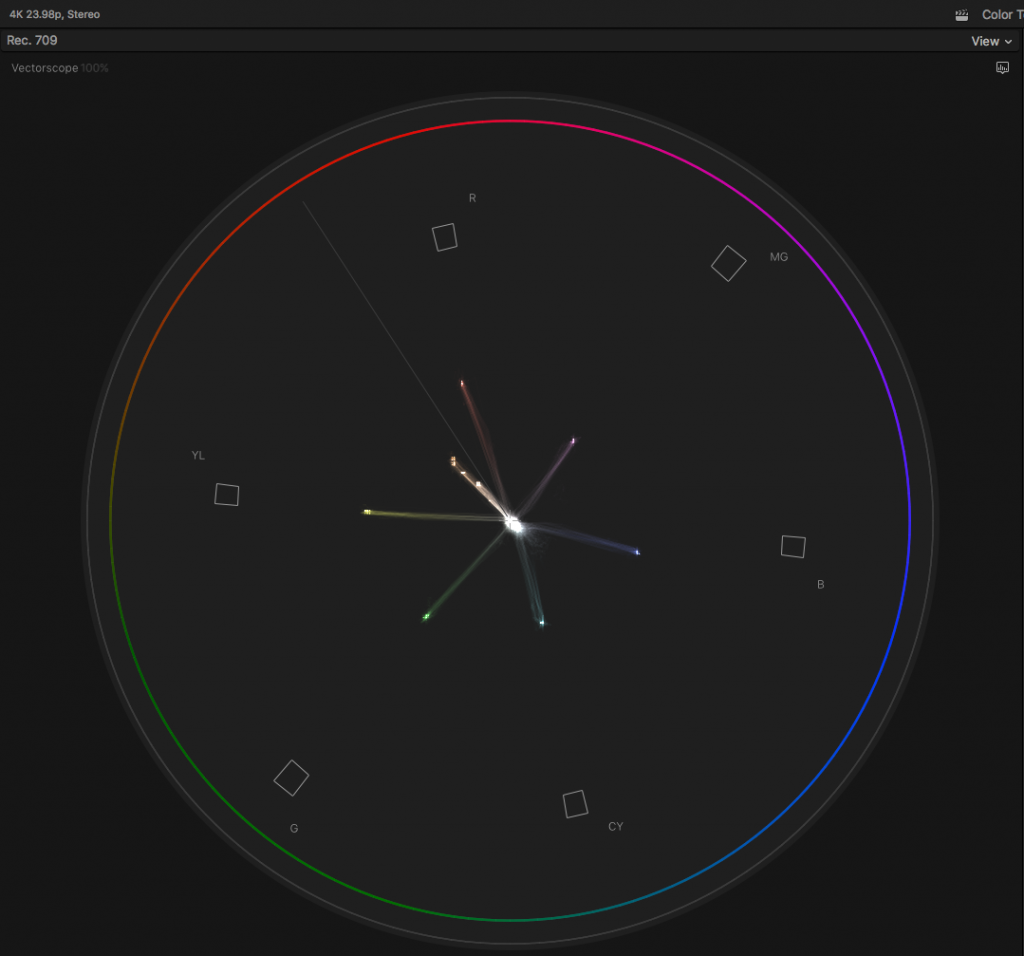 You can easily be fooled by just looking at the charts but on a Vectorscope, you can see the subtle difference in the colors. Below is an overlay of the two cameras to better see the differences.