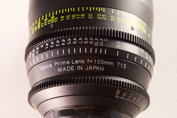 The 105mm T1.5 Vista Cinema has clearly marked focus and iris scales on both sides of the lenses. There certainly are a lot of markings and some cinematographers or camera assistants may think there are too many. What I did discover from going into rental houses here in Japan and talking to camera assistants and cinematographers who work here is that they actually like having lots of marking on lenses. As the lenses are made in Japan this is probably why there are so many markings.