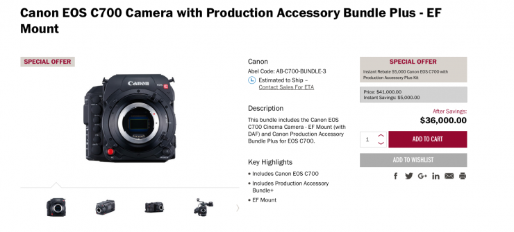 Canon is currently offering a $5000 instant rebate on the C700 and a production accessory bundle. This deal is available until June 30th, 2019. These deals are only available in the US.