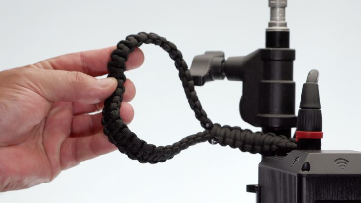 On top is a military-grade paracord strap for hanging on a light stand lock down knob. This could be a great counterbalance on the end of an arm as well. It’s nice to have options.