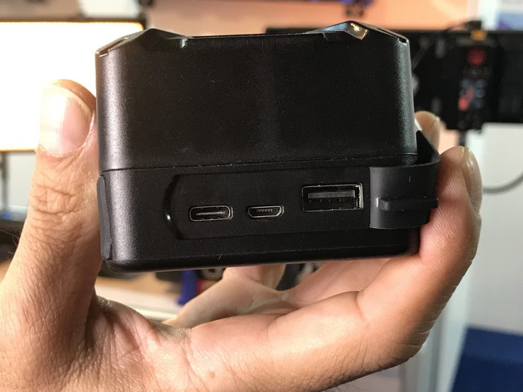 The 14.8V battery features D-Tap, USB-A, Micro USB, and USB-C ports and a handy display that shows remaining power.