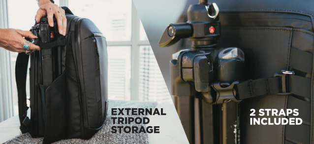 The Camera Pack offers full main access, quick side access and the ability to expand from 35 liters/2,100 cubic inches to 42 liters/2,600 cubic inches – with pockets for a tripod/bottle, laptop, tablet and other small items.
