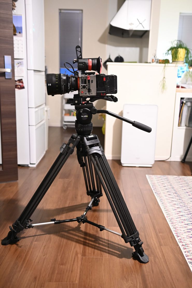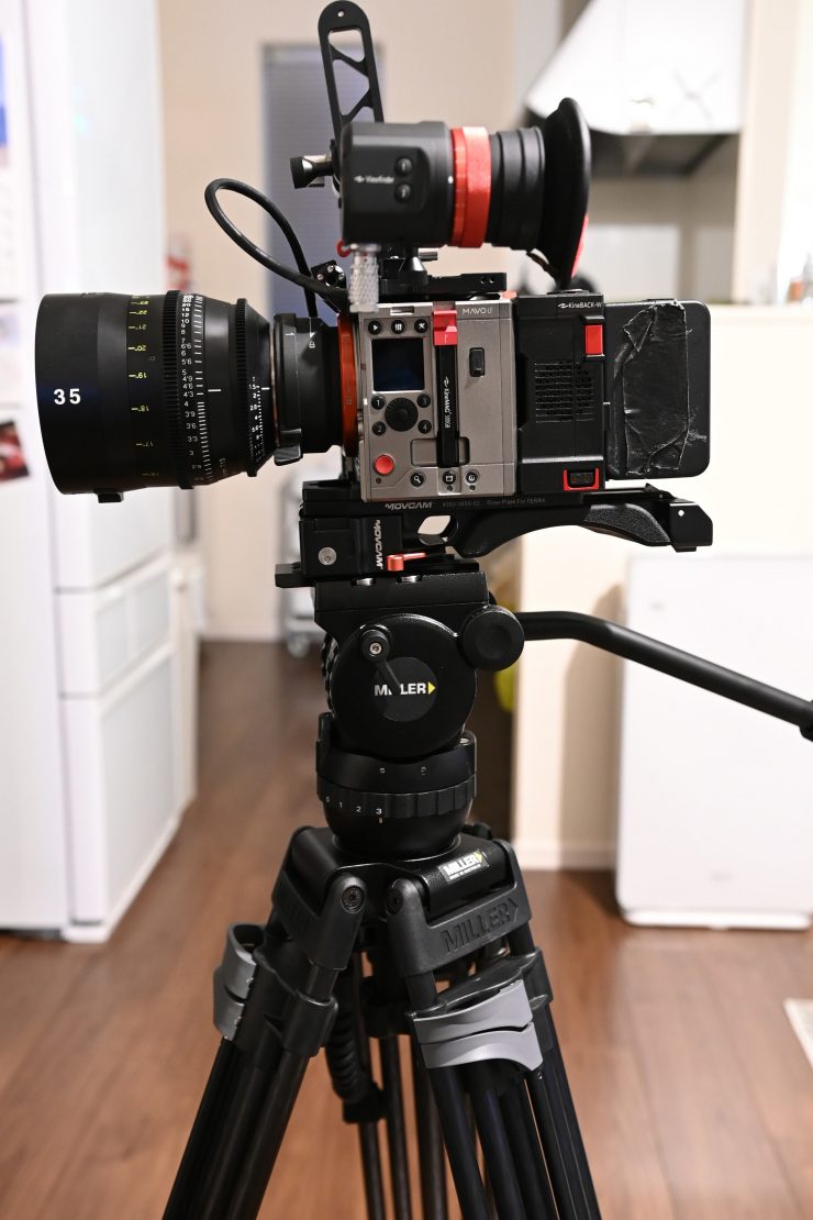 In theory, you could also use it with something like a Panasonic Varicam LT or Blackmagic URSA Mini Pro as long as you weren’t running a lot of additional accessories and large lenses. I used the head with the Kinefinity MAVO LF and a Tokina Cine Vista 35mm T1.5 lens and it performed well.