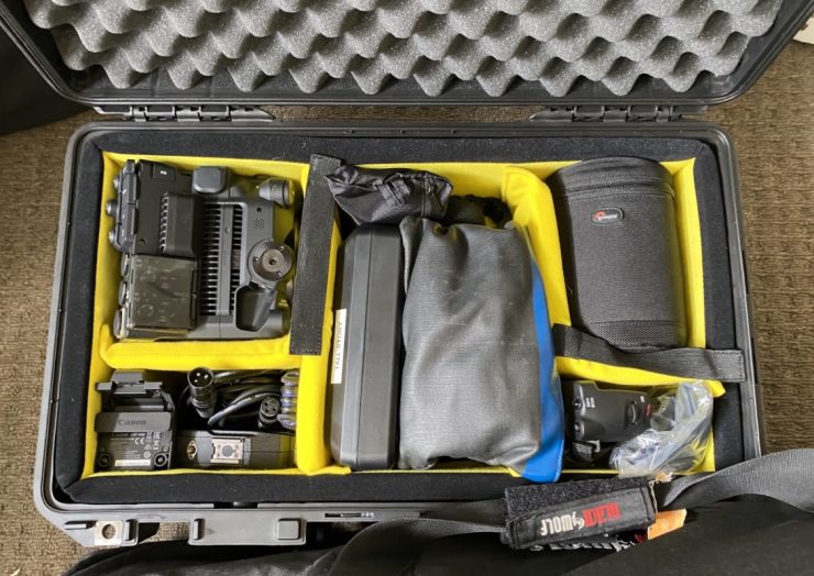 I ended up squeezing the C500MKII, a lens, battery, and card reader into a Pelican 1535 so that if it came to it we’d still be able to film, while the rest of the camera equipment and lenses went into the larger checked 1615.