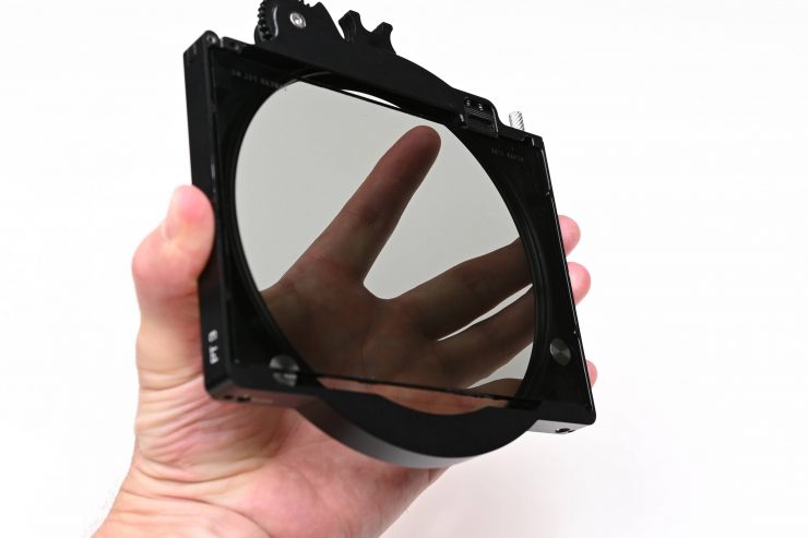 To create a variable ND setup, all you need to do is add a 138mm circular polarizer into the front of the filter. In the back, you put in a 4×5.65″ linear polarizer that you can then rotate to create a variable ND filter. This is particularly useful if you happen to be shooting with a digital cinema camera that doesn’t feature built-in ND filters.