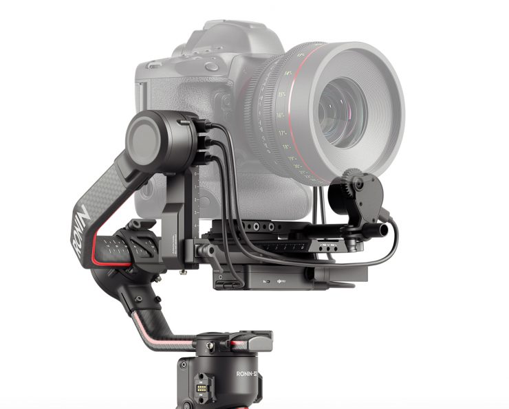 The DJI RS 2 can utilize accessories include a cheese plate, Focus Wheel, 3D Focus System, Twist Grip Dual Handle, RavenEye Image Transmission System, Tethered Control Handle, counterweight systems, and more.