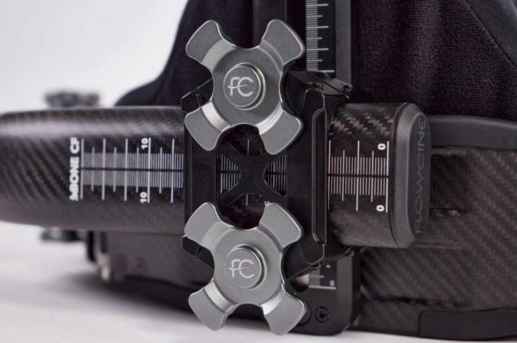 The socket blocks can be adjusted around tilt to adjust fore and aft position, allowing the gimbal/camera to stay in a given position from the operator’s body.