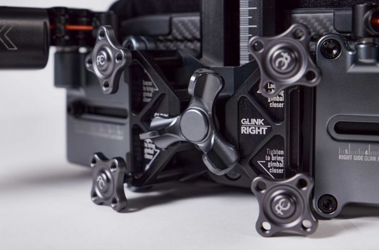 Both GLINK gimbal handles at each side can be adjusted without tools on the GLINK CF top frame to allow good tilting balance of your camera and gimbal.