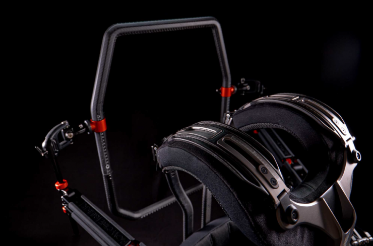 Apart from the vertical Z-axis isolation, it also allows the operator to pan at both sides while walking in straight lines, and also offers a very big linear boom range thanks to the retraction brackets at the back allowing the operator to boom all the way from over eye level to low mode camera lens positioning in a straight vertical line.
