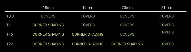 The MTF services converted Fujinon MK cine lenses fully cover the Super35 sensor area in 16×9 on both the RED Komodo and Canon C70. The MK 50-135mm T2.9 also fully covers the wider 17:9 (open gate) mode of the RED Komodo at all focal lengths and T stops. The MK 18-55mm T2.9 covers the Komodo 17:9 mode at wider apertures but exhibits some corner shading at its widest end from 20mm to 18mm when stopped down. From 21mm up it fully covers the sensor area.