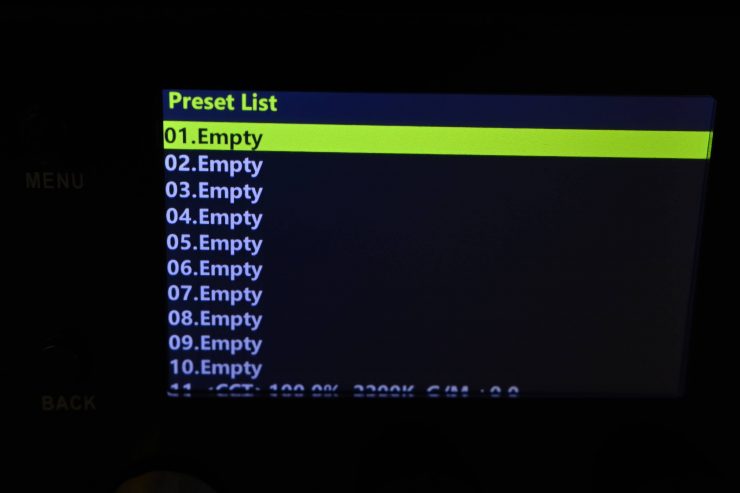 PROLYCHT has also included a very easy way to save and recall presets. This is really well implemented and it allows you to jump between saved settings very quickly.