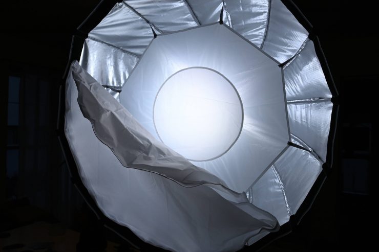 While the soft box does a pretty good job, it doesn’t produce as soft of a light source as say a DoPchoice softbox. The softbox, despite having a beauty dish, still has quite a hot spot in the middle.