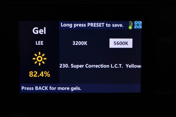 Having built-in Digital Gels not only means that you don’t have to physically carry gels around, but you can also quickly and easily replicate popular gels. Using the gel mode can help you match other lighting sources, especially if you are working with other lights with physical gels.