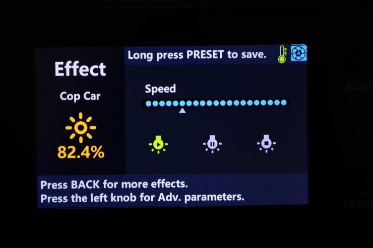 Effects mode lets you recreate a wide range of lighting effects that can be handy for certain scenarios. The effects include:
