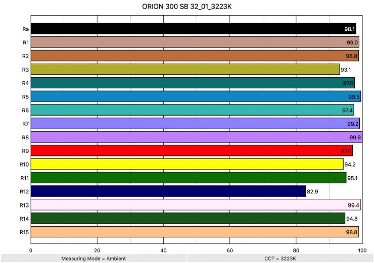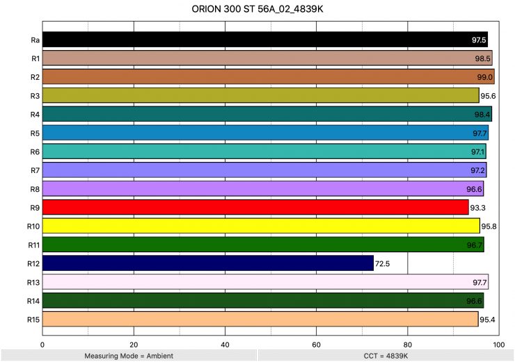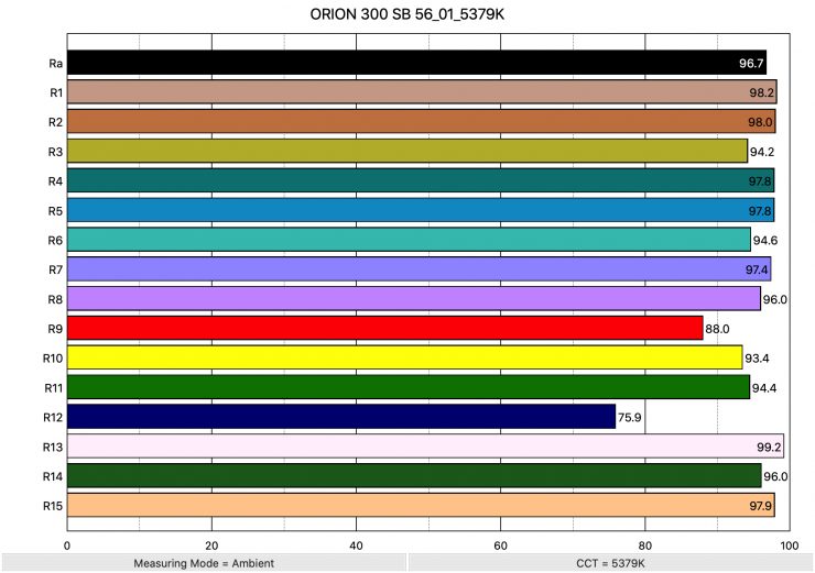 As you can see neither lights are a perfect match to the Orion 300, but you could potentially fine-tune the lights to try and get them to match more closely. In saying that, a score in the ’90s is still reasonably good.