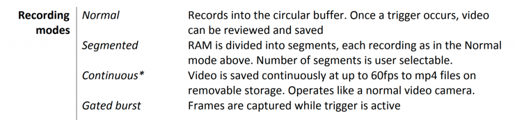 - Electronic shutter from 1/fps down to 10us (1/100,000 s)