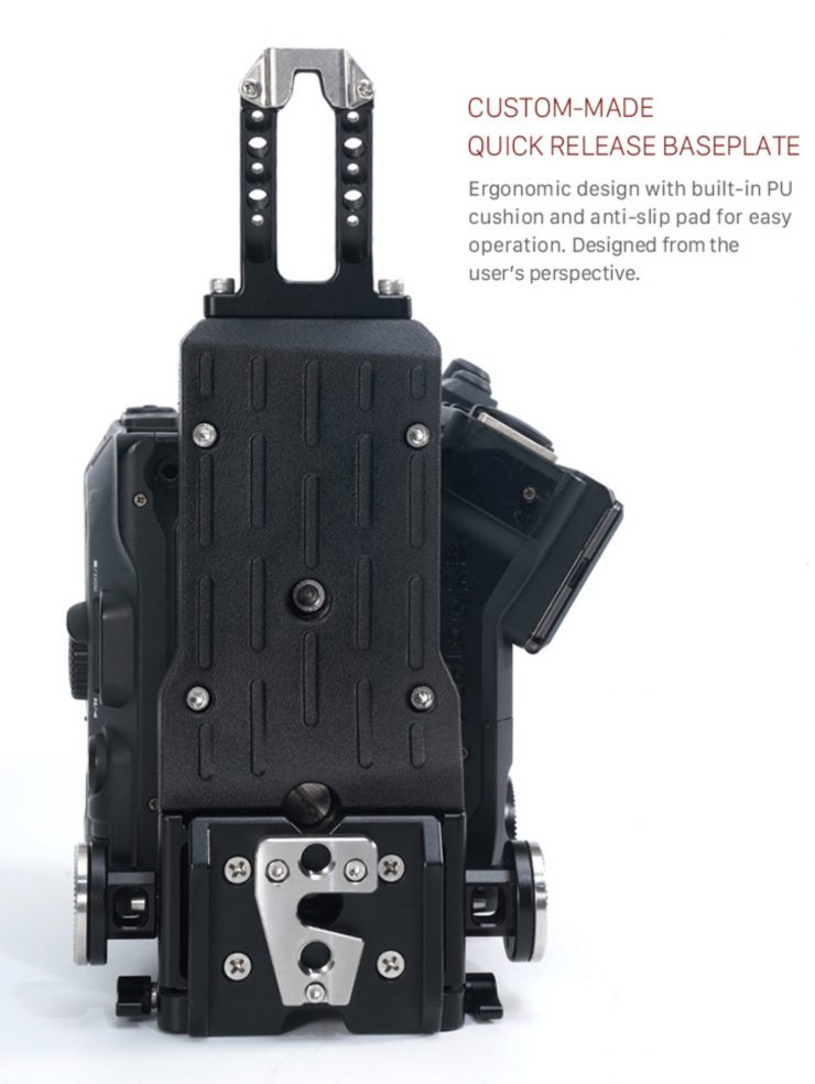 The original Canon top handle fits onto the top plate and allows you to comfortably carry or operate off the top of the cage. The Top Plate features a lightweight and compact custom design. There are multiple built-in threaded holes for mounting accessories securely.