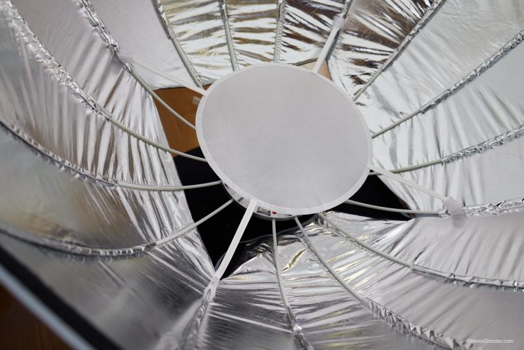 The outer fabric looks to be the same as its big brother. An inner diffusion attaches with hook and loop tabs that help soften the center to avoid a hotspot. I found it to work very well, but in some cases, when the COB fixture output is low, the inner diffusion might not be needed since it does reduce the output.