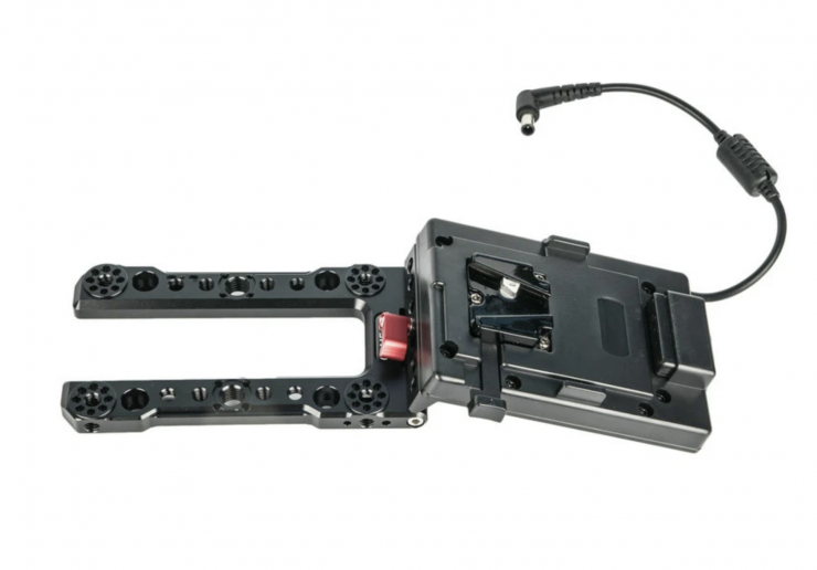 This is an adjustable V-Mount Battery Plate that allows you to attach V-Mount batteries to the Sony FX6. The plate includes a DC 19.5V output that you attach directly to the camera.
