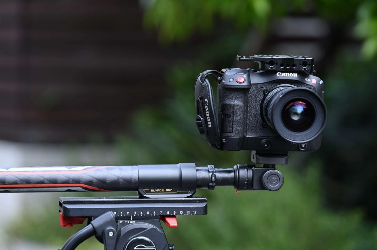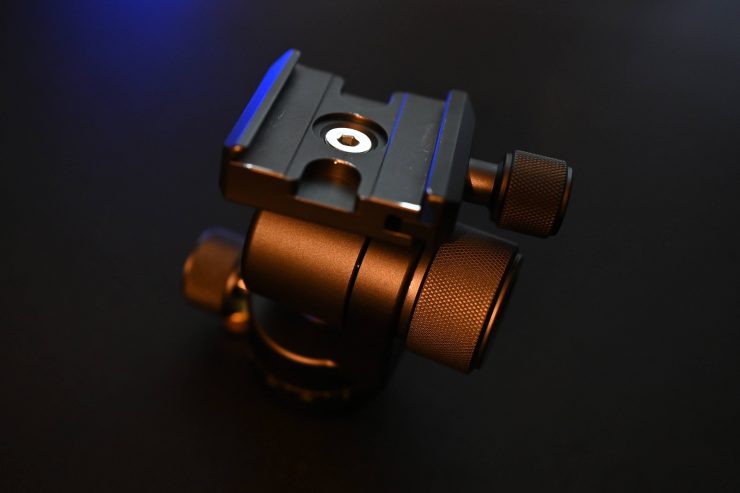 On the pan & tilt head, there are two locking mechanisms for making adjustments. The pan & tilt head mechanism looks pretty small, but it seems to handle a reasonable amount of weight. I didn’t encounter any issues using a Canon C70. If you try and put too much weight on the pan & tilt head it will just move.