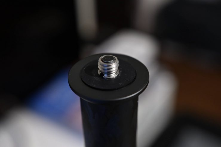 You need to attach the included mounting plate to a camera. The quick-release plate is supposed to come with 1/4” and 3/8” screws, but with the version I was testing there were no screws.