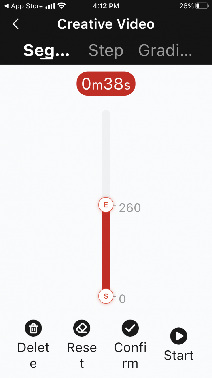 If you enter the Creative Video Mode you can set the start and end points as well as tell the Slypod Pro how long you want the move to take. This is a handy mode if you want a shot to go for a specific period of timer or if you want to do a timelapse.