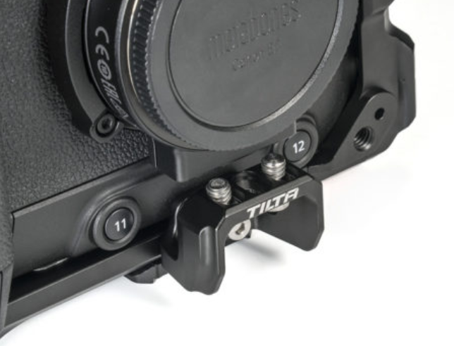 One of these rosettes is located on the bottom of the cage which allows you to mount the Tilta Adjustable Top Handle in order to more comfortably shoot vertically.
