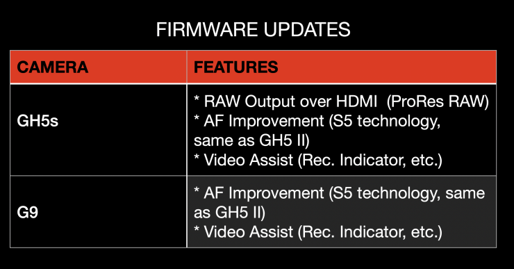 Panasonic has announced that new firmware updates will be coming to the GH5s and G9 cameras.