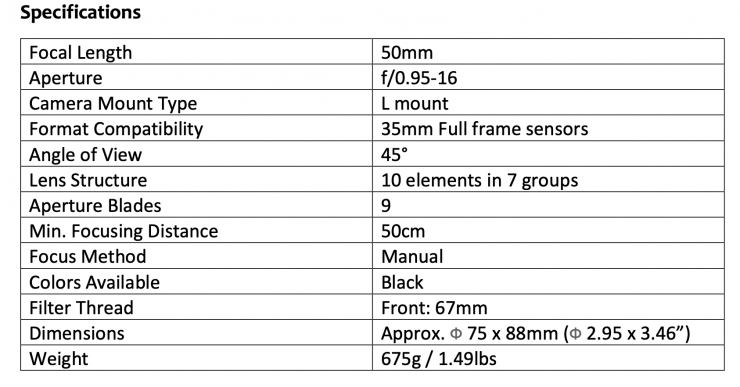 This is the exact same Mitakon Speedmaster 50mm f/0.95 III lens that is already available in Sony FE, Canon R, Nikon Z, and Leica M mounts.