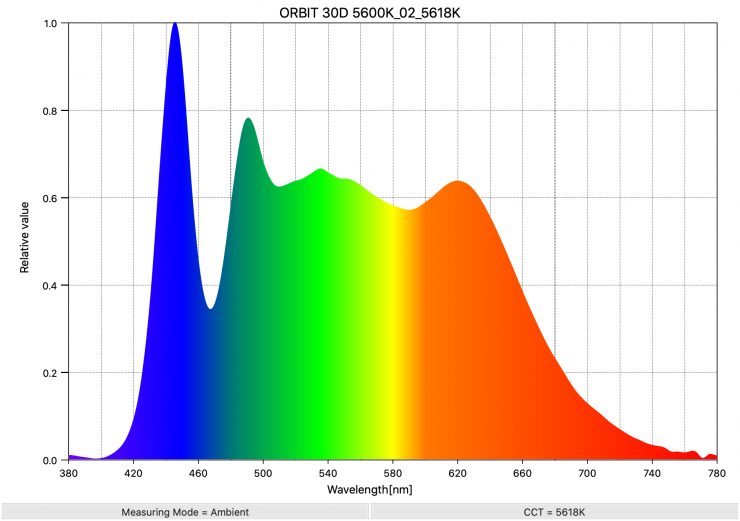 As a comparison, above you can see the spectral distribution of the ARRI Orbiter.