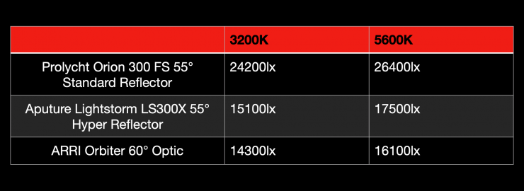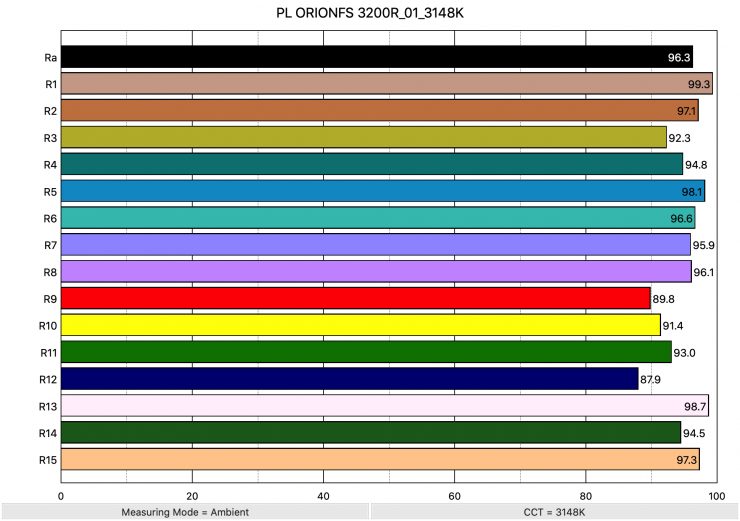 As another test, I thought I would compare those same lights against the Orion 300 FS at 3200K. Below you can see the results.