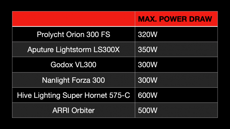 Just to be crystal clear, some of these lights don’t have the features of the Prolycht Orion 300 FS. I am simply giving you a reference as to how it compares weight-wise to other similar styled fixtures.