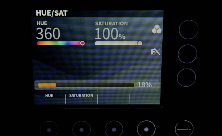 If we look at how well the light replicates a fully saturated Red, you can see above that it is able to produce 100% saturation and the Hue stays at 0-degrees.