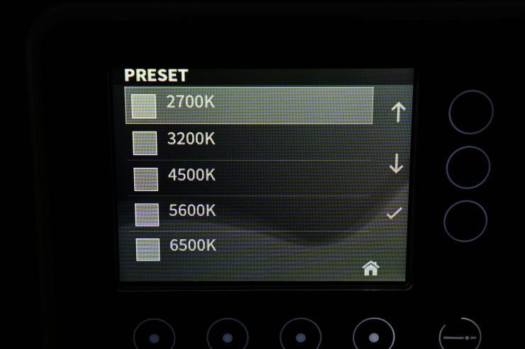 You can also go to a Preset page where you can choose various preset Kelvin color temperatures. While this is nice to have, I personally found it quicker to just dial in the Kelvin color temperature yourself rather than going into a menu to do it.