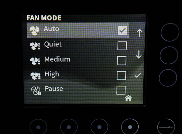On the Information page, I found that the fan kicked in once the LED panel temp. reached 70°C. When the fan kicked in it seemed to stay at the Quiet mode level. If you then set it back to Auto the fan comes on at the High level to cool the fixture down. It stays on Auto for a very long time, even though the LED panel temp goes under 60°C. This was slightly odd, but it is something you need to be aware of if you are using the light.