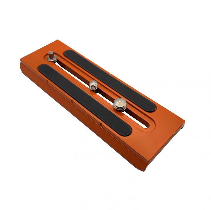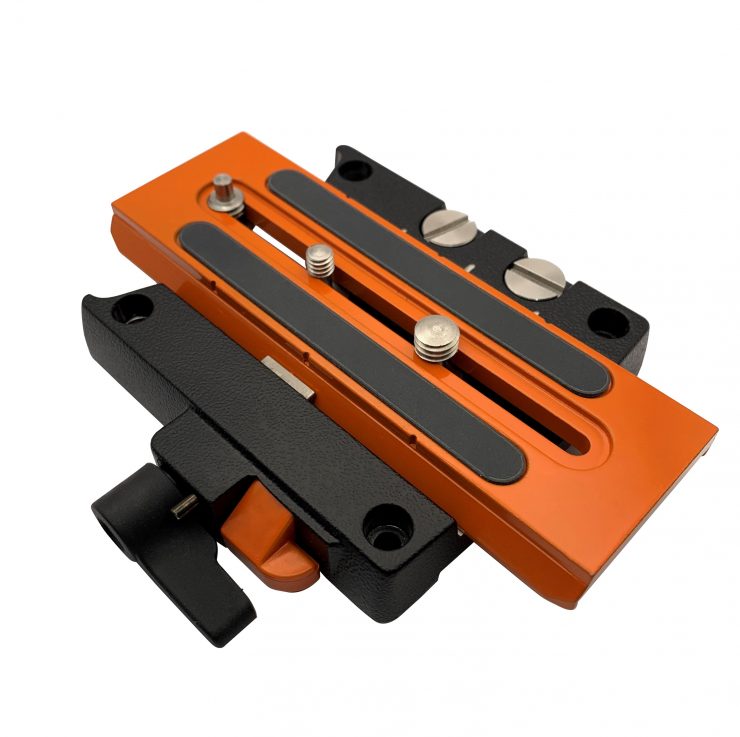 The Versa camera plate is colored burnt orange to identify it from the Miller camera plate.