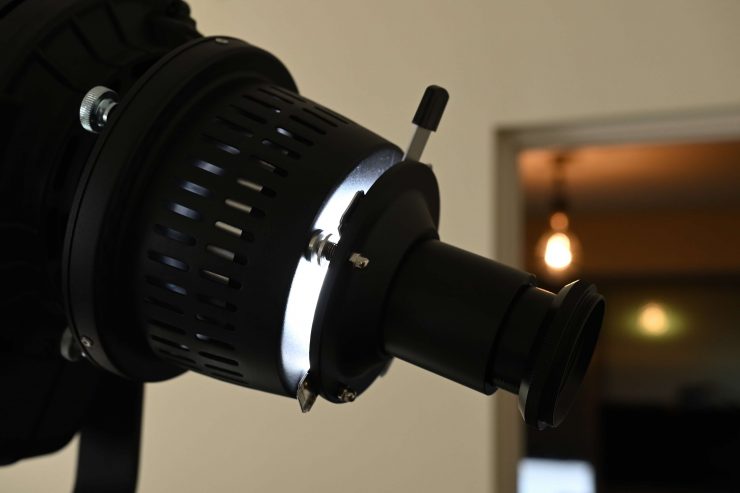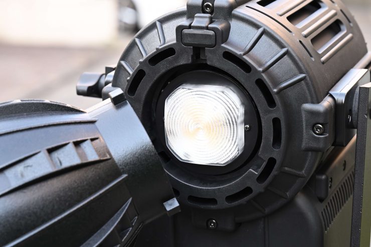Above you can see what the light looks like when it is used with the Prolycht Orion 300 FS Projection Lens Kit. The Lupo works really well with this Projection Lens kit. You can create a tiny light source, or a large source using gobos.