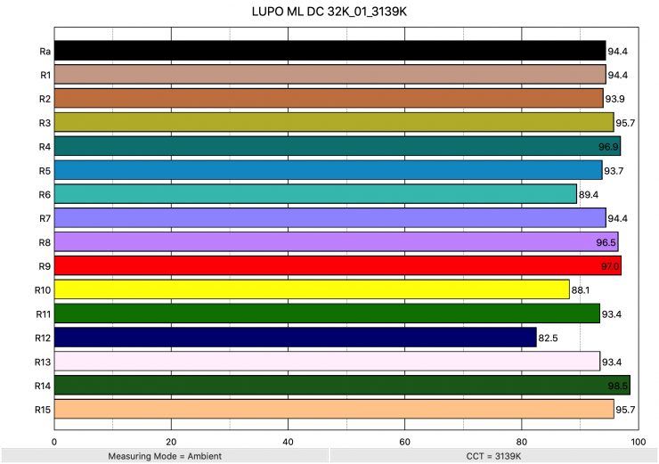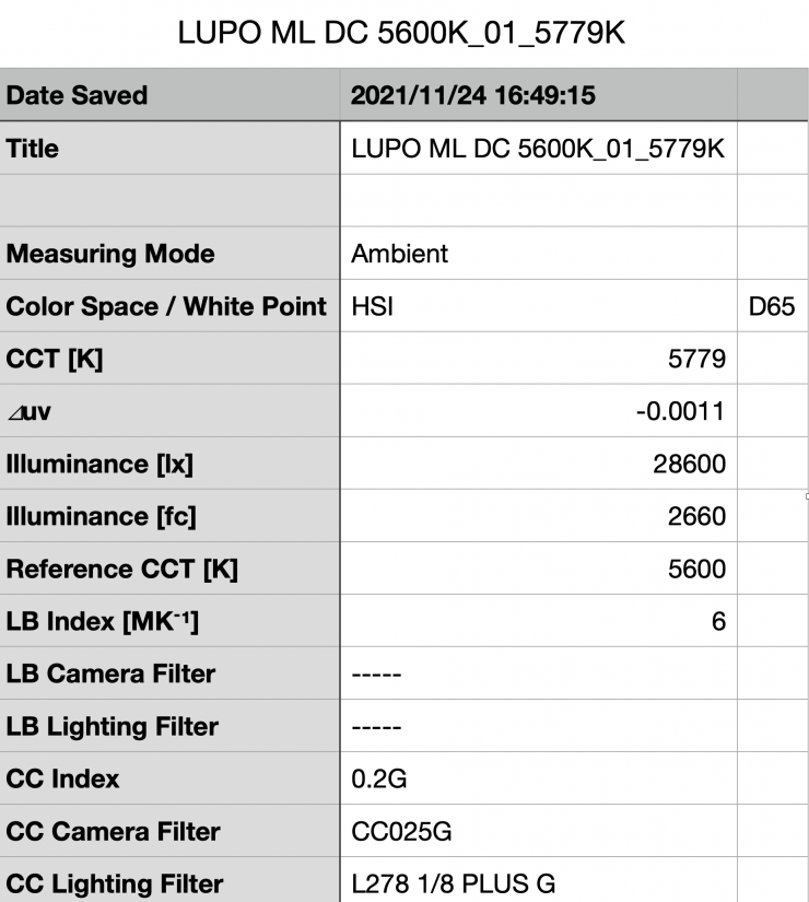 Above you can see the scores for the Lupo Movielight 300 Dual Color PRO at various Kelvin color temperatures. Below I have listed the figures as well.
