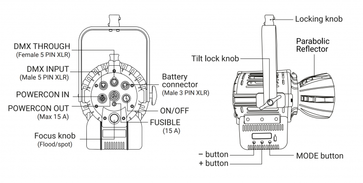 If you want an output comparison, the Aputure 300x when used open face at 5600K puts out 6300lx @1m. Please remember that the Aputure 300x has a wider beam angle of 105 degrees when used open face, however, it also draws 350W.
