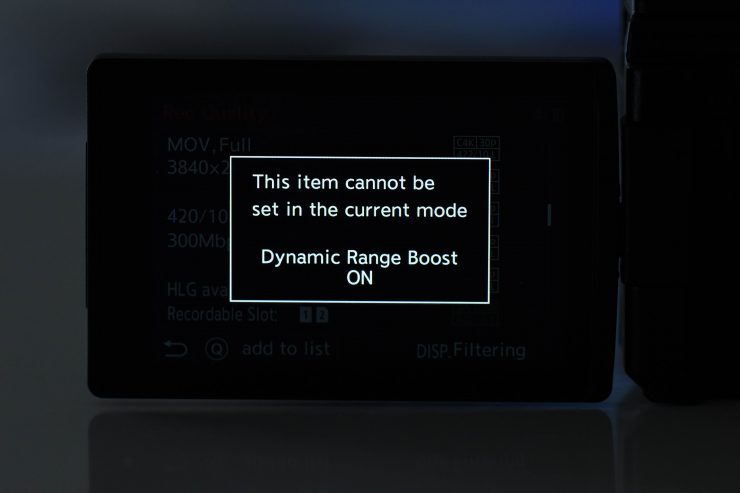 One of the biggest usability issues I found is when you are using the Dynamic Range Boost in conjunction with V-Log the base ISO is so high that you need a ton of ND to shoot outdoors in sunny conditions. You really need to factor this in, because I was using a 0.4 to 1.8 variable ND filter and that wasn’t enough to maintain correct exposure unless I stopped the lens way down. In some cases, I couldn’t shoot at all because even if I stopped the lens down to F22 the image was still overexposed.