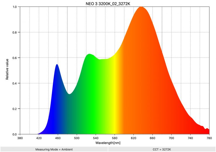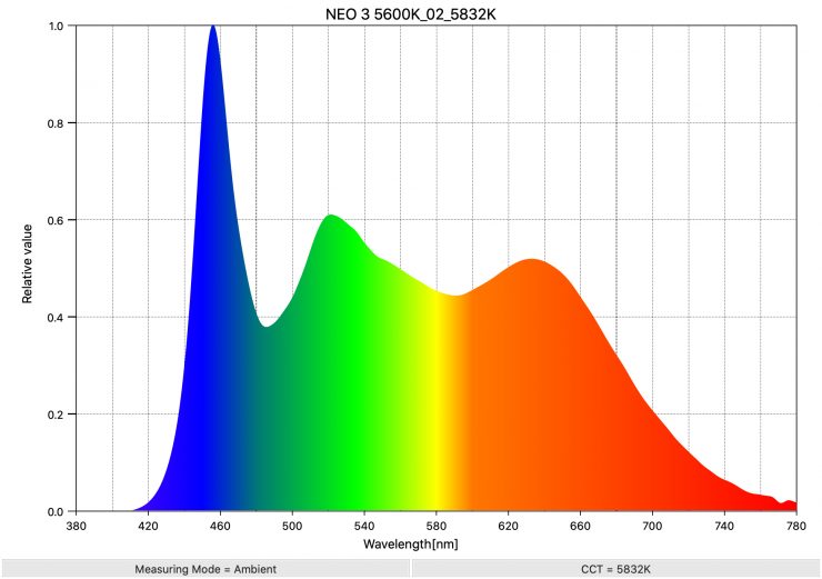 Above you can see the spectral distribution of the NEO 3 when it is set at 5600K. The spectral distribution is not overly full and there are a few bumps.