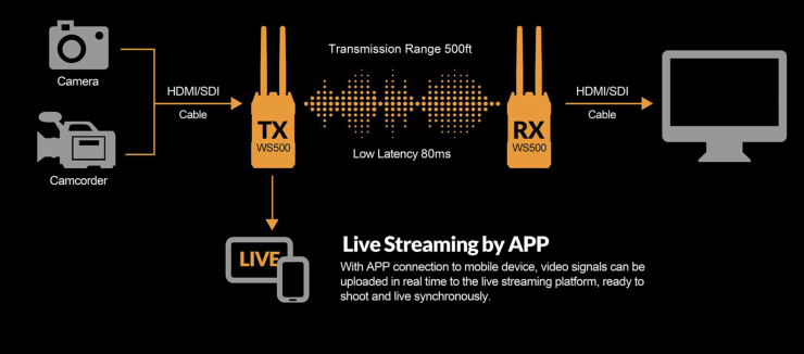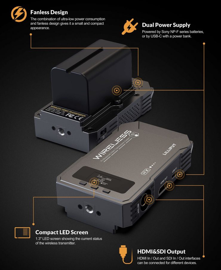 The system consists of TX and RX units that both feature 3G-SDI and HDMI. Just like most other similar systems, it can not only send images from the TX to the RX, but it can also be linked to up to three mobile devices, allowing multiple people to view the feed. Lilliput claims that the latency is less than 80ms.