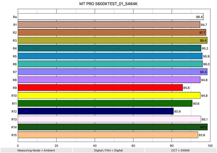 Overall the MT Pro in 3200K looks very good, with an extended CRI of 91.38.